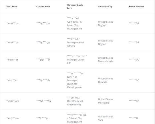 We provide direct, detailed, specific information to help you make more valuable connections with your future business contacts: emails, names, phone numbers, postal addresses, business titles, company/industry information, department information, fax numbers, revenue, and even employee information.